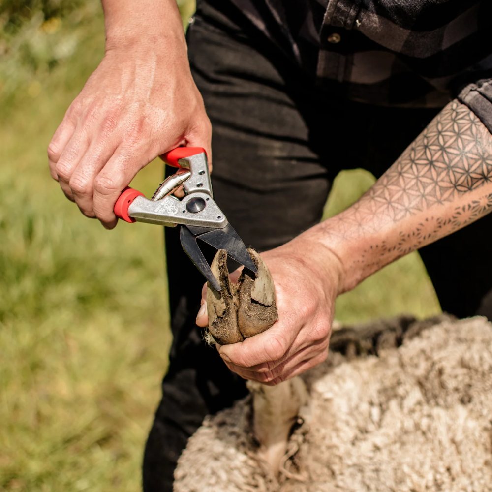Profesionální nůžky určené pro přesné, rychlé a hygienické ošetření paznehtů ovcí a koz. Lehká konstrukce, ergonomický tvar a otočná rukojeť výrazně snižují námahu při práci a umožňují bezpečný, čistý střih i při delším používání. Speciální povrchová úprava čepelí minimalizuje ulpívání nečistot a pomáhá omezovat riziko přenosu infekcí.